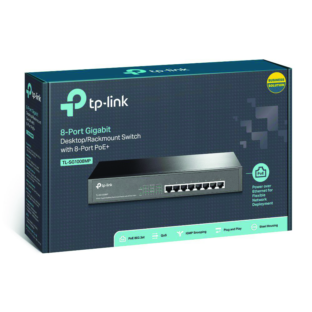 The TL-SG1008MP is an 8-Port Gigabit Desktop/Rack mountable Switch with all 8 ports supporting the IEEE 802.3af/at, PoE+ standard. It provides a simple way to expand a wired network by transferring power and data over a single Ethernet Cable. With a total power budget of 126W, up to 30W per port, TL-SG1008MP can power more high-powered devices such as wireless Access Points (APs), IP Cameras or IP Phones. Moreover, with innovative energy-efficient technology, the TL-SG1008MP can save up to 75% of the power consumption, making it an eco-friendly solution for your business network.